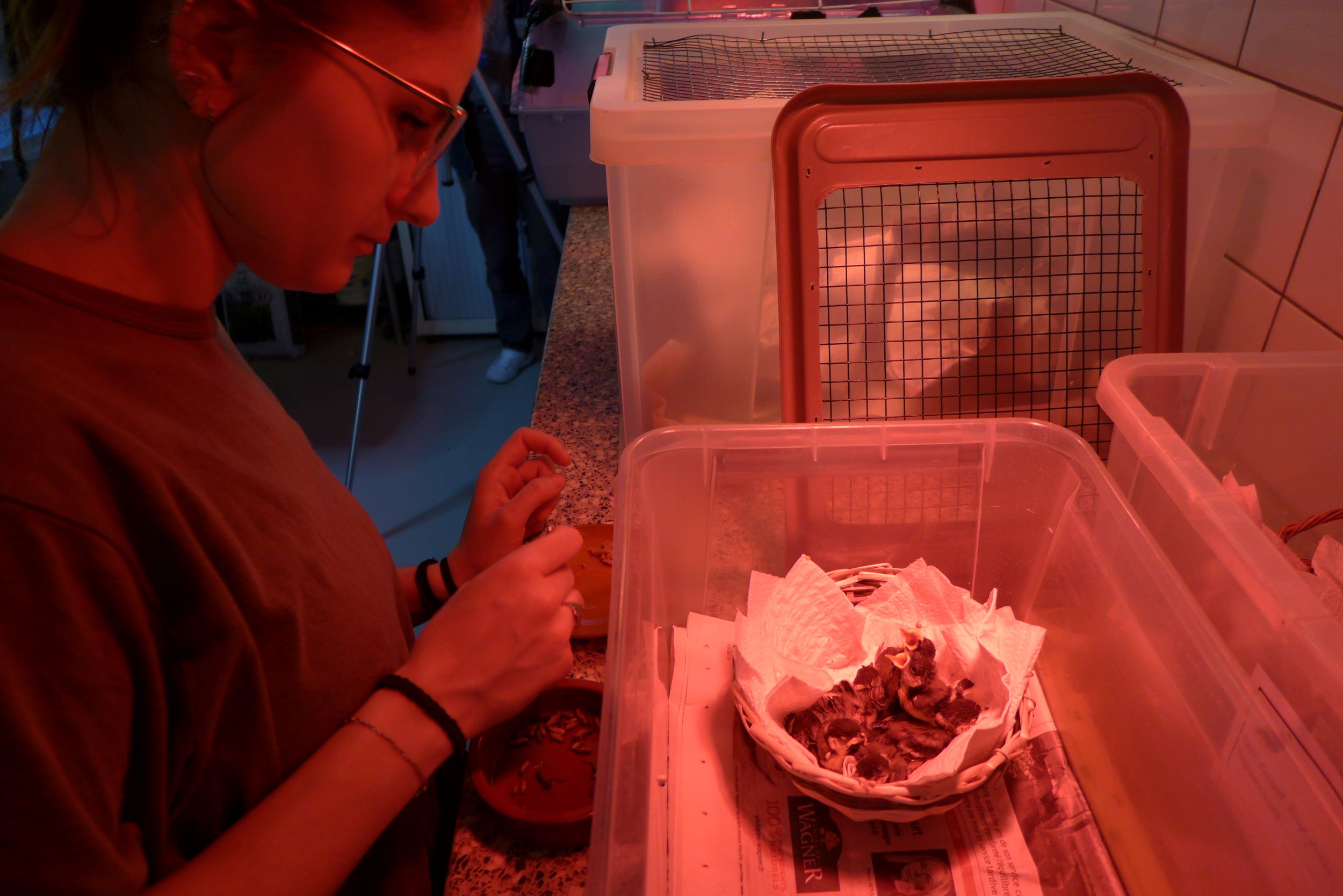 - Nourrissage des animaux sauvages accueillis ainsi qu'au suivi thérapeutique de ces derniers