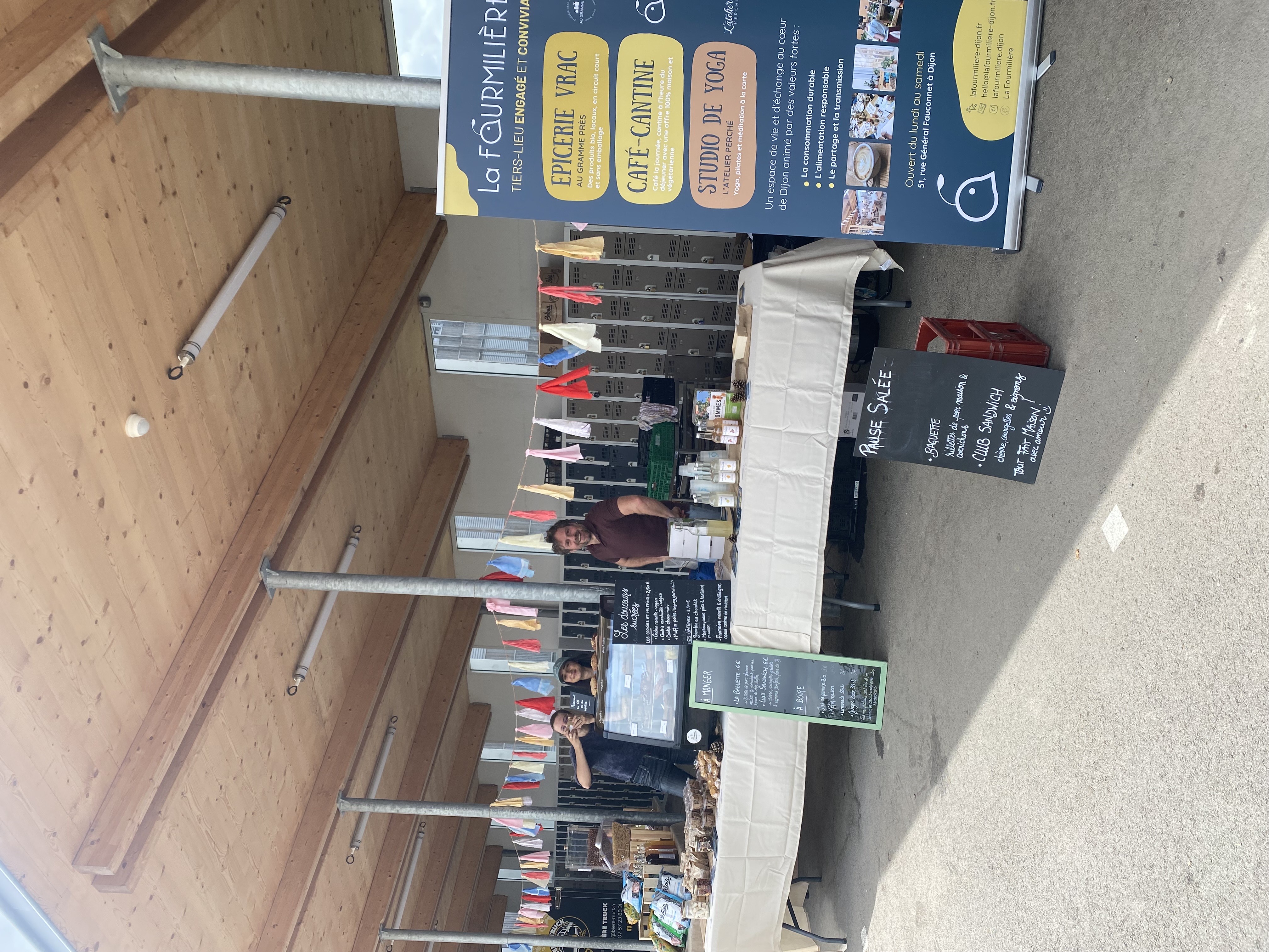 La Fourmilière ist ein Ort im Herzen von Dijon, der drei Aktivitäten vereint: einen Unverpackt-Laden, eine Café-Kantine und ein Yoga-Studio.