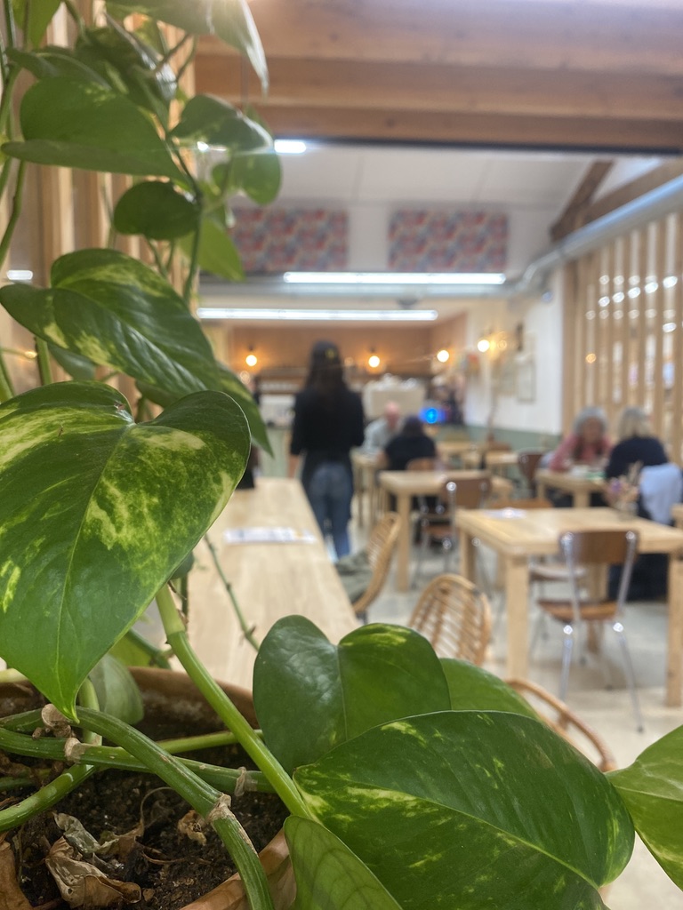 Die Café-Kantine ist tagsüber ein beliebter Treffpunkt, der Getränke, Gebäck und 100 % vegetarische, hausgemachte Speisen anbietet.
