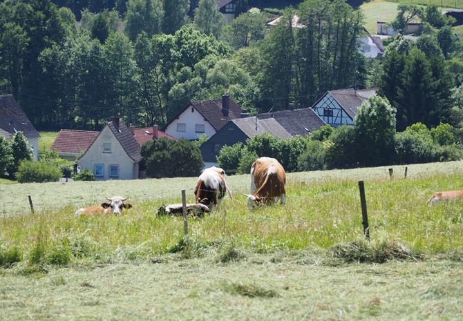 Die Milchkühe passen wunderbar in diese Mittelgebirgsgegend. Ihre wertvolle Milch veredeln wir auf dem Hof zu leckeren Produkten, die in der Umgebung ihre Liebhaber und Käufer finden.